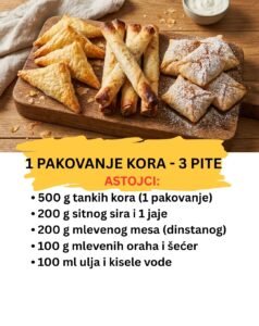 • Meta: Kako iskoristiti kore za pitu na 3 načina. Recepti za trougliće, rolnice i slatke baklavice.