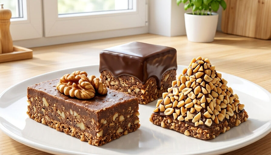 Kada pripremate sitne kolače, raznovrsnost oblika i ukusa na tacni je ono što prvo privlači pažnju. Ovaj recept je pravo kulinarsko blago jer vam omogućava da od samo jedne bogate, nepečene smese pune keksa i lešnika, dobijete tri vizuelno potpuno različita dezerta.