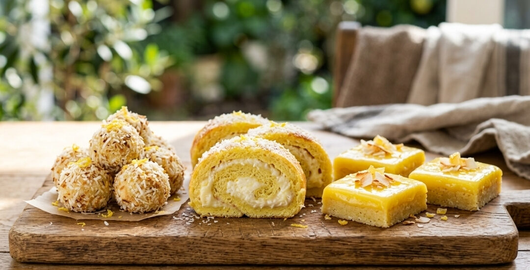 Kao što možete videti na fotografiji, pred vama je prava sunčana rapsodija: (1) mekane, snežne limun kuglice uvaljane u kokos, (2) predivan svetli rolat sa bogatim belim kremom i (3) savršeno precizne kocke sa osvežavajućom žutom glazurom. Priprema je brza, laka, a rezultat izgleda kao iz najbolje poslastičarnice!