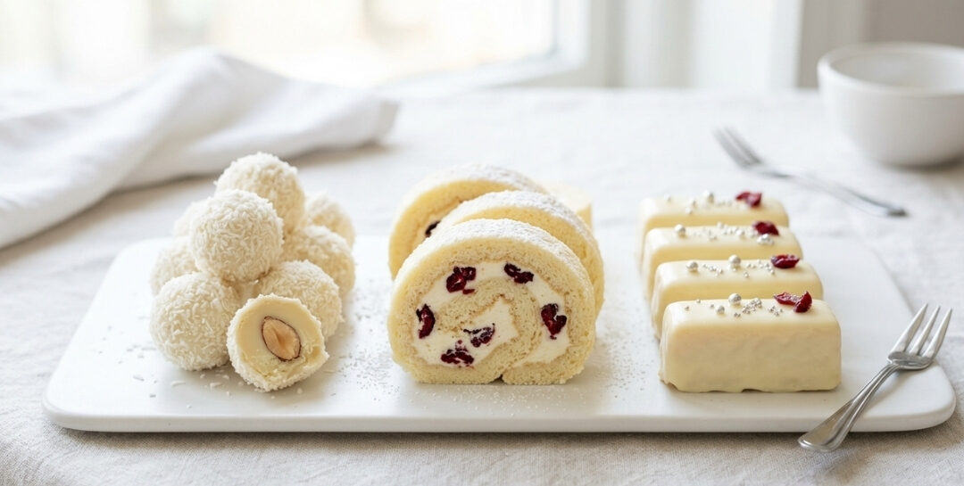 Kada su vam potrebni brzi, vizuelno prelepi i preukusni sitni kolači za slavu, rođendan ili praznike, princip “jedna smesa – više ukusa” je pravo rešenje. Ovi beli kolači se ne peku, pripremaju se od jednostavnih sastojaka, a na tacni izgledaju izuzetno luksuzno i profesionalno.