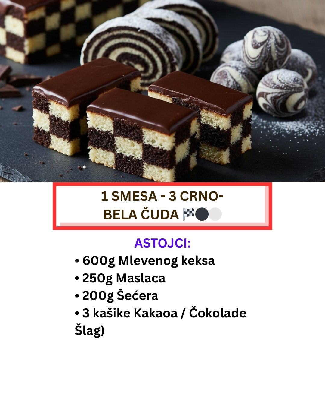 “The Chessboard Collection” je više od recepta – to je zabava u kuhinji sa fantastičnim rezultatom. Od jedne smese dobićete tacnu koja izgleda kao da je radio profesionalac. Uživajte u stvaranju!