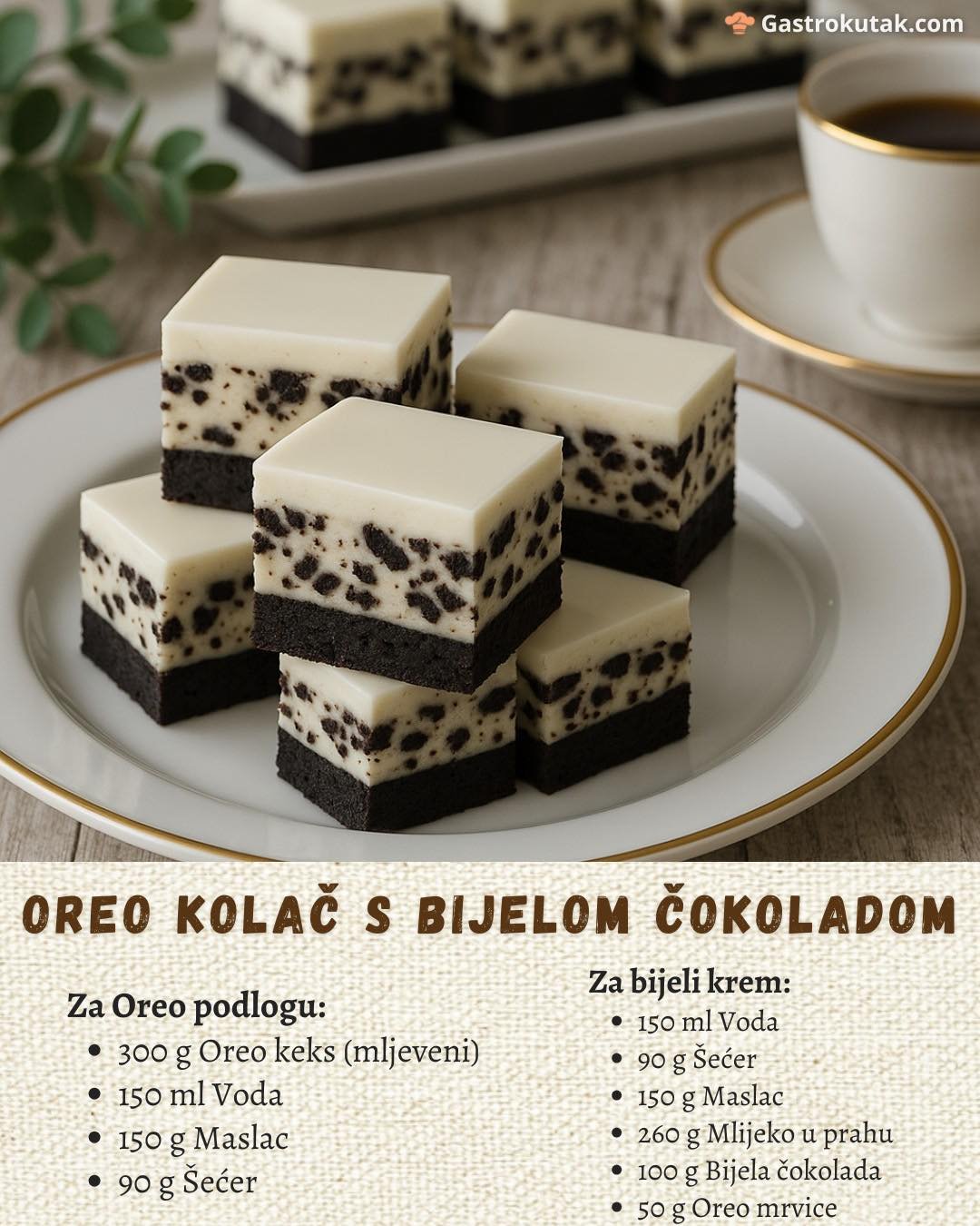 Ako volite kombinaciju hrskavog Oreo keksa i nježne kreme od bijele čokolade, ovaj kolač će vas oduševiti već na prvi zalogaj. Savršeno je balansiran, jednostavan za pripremu i izgleda spektakularno — idealan za svečane prilike, rođendane ili kada poželite nešto posebno slatko. Donosimo vam detaljan recept i način pripreme kako biste svaki put dobili savršen rezultat.