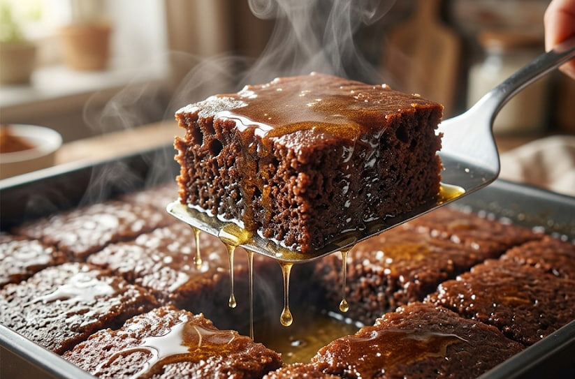 Korak 5: Priprema sirupa i zalivanje Dok se kolač peče, u manjoj šerpi prokuvajte 1 čašu vode i 1 čašu šećera. Neka vri oko 5 minuta dok ne dobijete blagi sirup. Čim izvadite pečen kolač iz rerne, odmah ga prelijte ovim toplim sirupom. Ostavite da se potpuno ohladi i upije svaku kap tečnosti, što će mu dati onaj fantastičan “mokri” izgled sa fotografije.