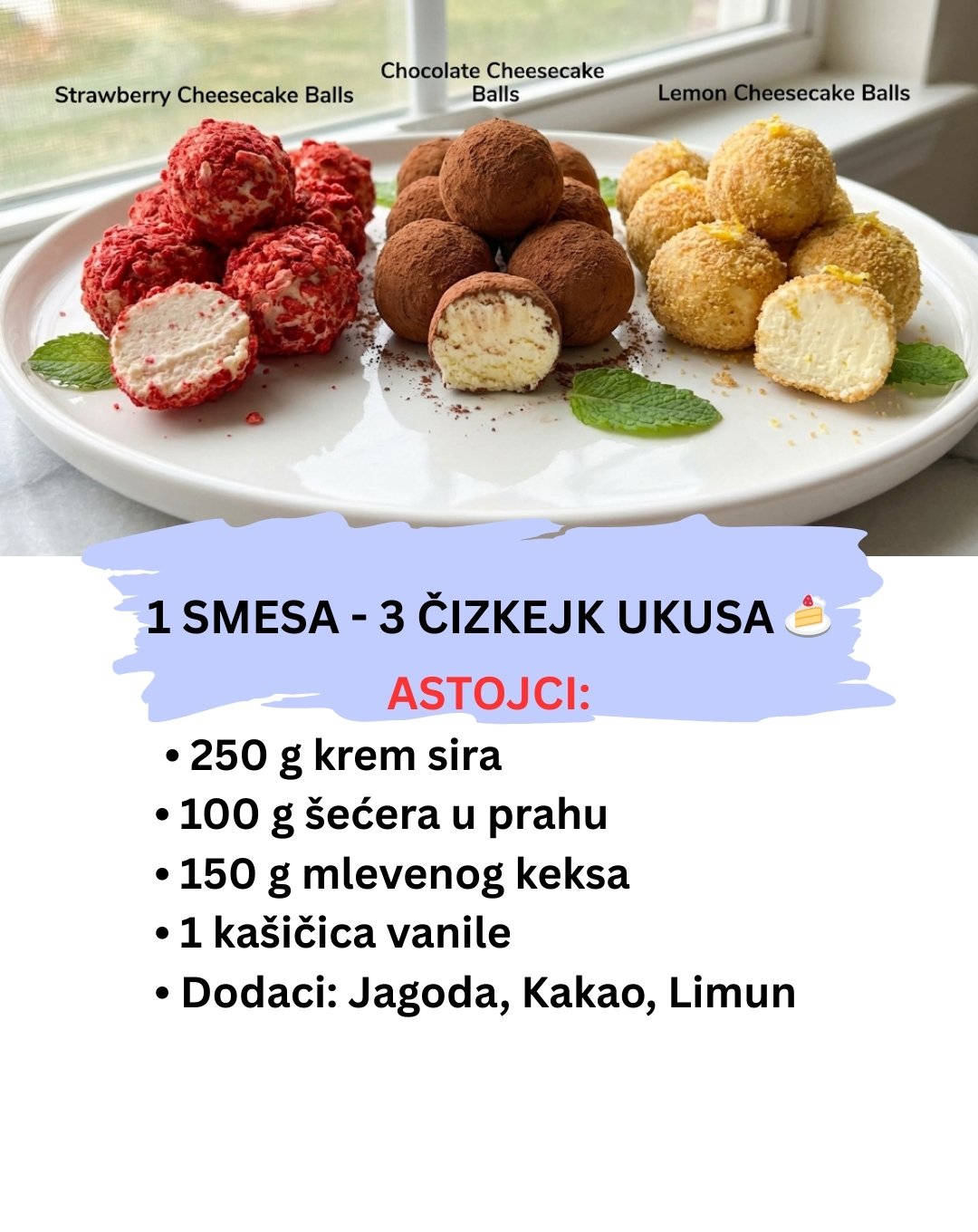 Čizkejk Kuglice: 1 Smesa za 3 Ukusa (Jagoda, Čokolada i Limun)