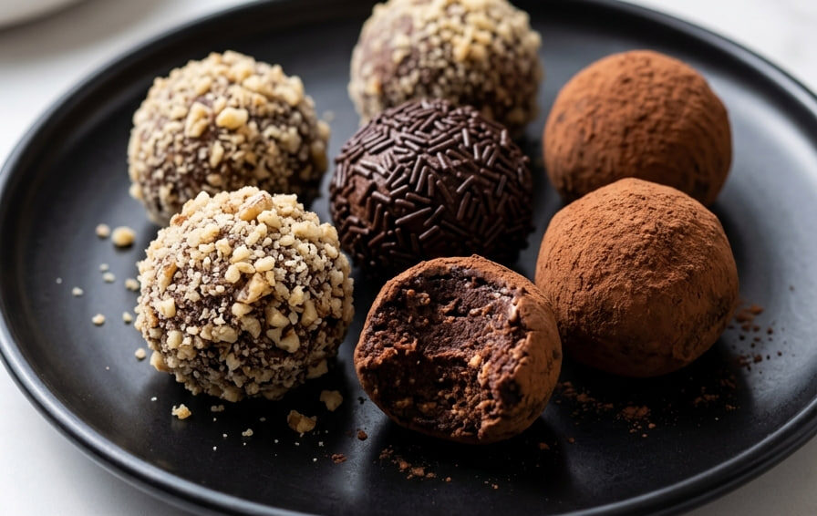Tajna savršenih kuglica sa slike leži u njihovoj teksturi – one moraju biti dovoljno čvrste da zadrže oblik, ali istovremeno kremaste i topive u ustima. Kako bismo postigli tu vrhunsku sočnost, u smesu smo dodali otopljeni puter i kvalitetnu otopljenu čokoladu koja povezuje sve suve sastojke. Različiti načini valjanja – u mlevene orahe, kakao prah ili čokoladne mrvice – čine ove kuglice vizuelno veoma dekorativnim i primamljivim.