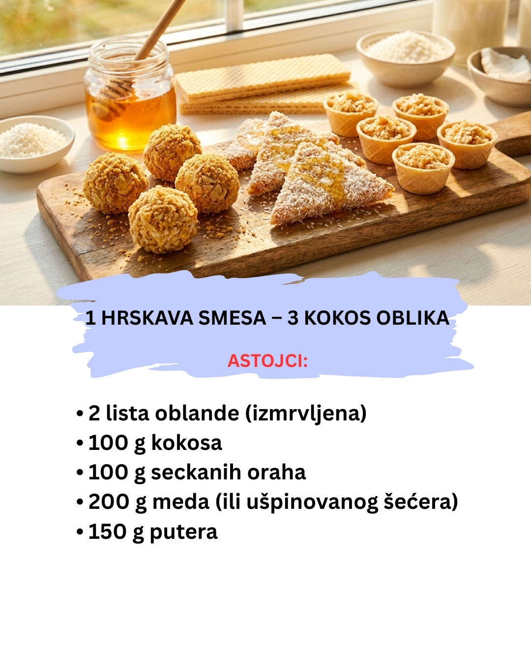 Ovi kolači od izmrvljenih oblandi i kokosa su dokaz da se i od ostataka materijala mogu napraviti vrhunske poslastice. Hrskavi su, slatki i gotovi za tili čas.