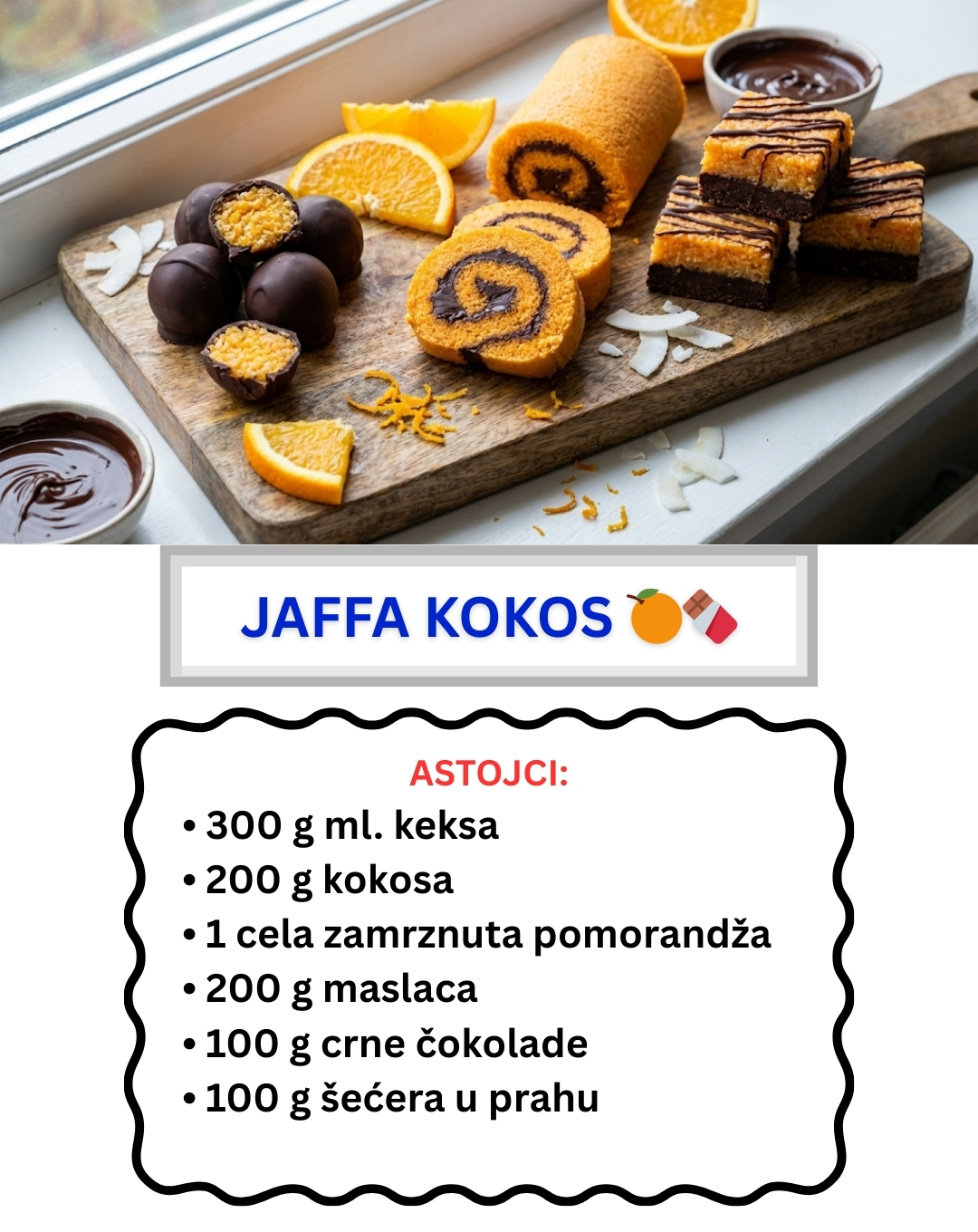 Postoje kombinacije ukusa koje su večne, a jedna od njih je svakako pomorandža i čokolada. Ovaj recept za “Jaffa Kokos” kolače donosi tu omiljenu harmoniju na vašu slavsku ili prazničnu trpezu, ali u novom, osvežavajućem ruhu.