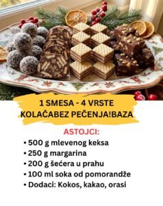 Kada krene sezona slava, svi tražimo recepte koji su brzi, izdašni i ne zahtevaju pečenje. Predstavljam vam “baznu smesu” od koje za samo pola sata možete napraviti punu tacnu različitih kolačića!