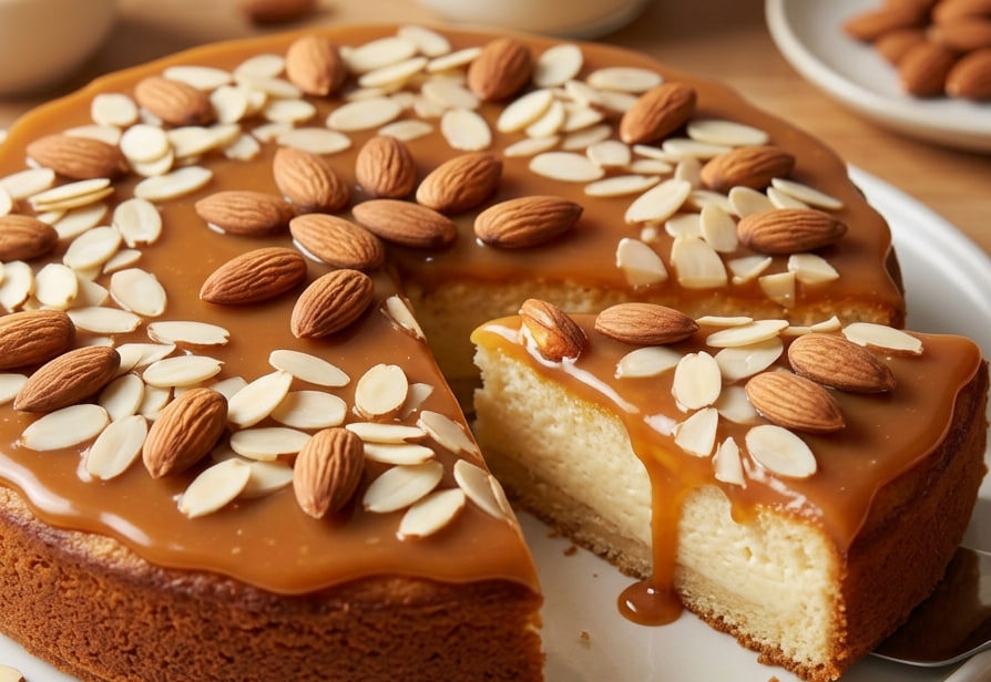 Kada želite desert koji izgleda luksuzno, a priprema se neverovatno brzo i lako, Karamel badem kolač je nepogrešiv izbor. Ovaj kolač spaja mekoću domaćeg biskvita, bogatstvo slatkog karamela i predivnu hrskavost pečenih badema u jednu savršenu celinu.