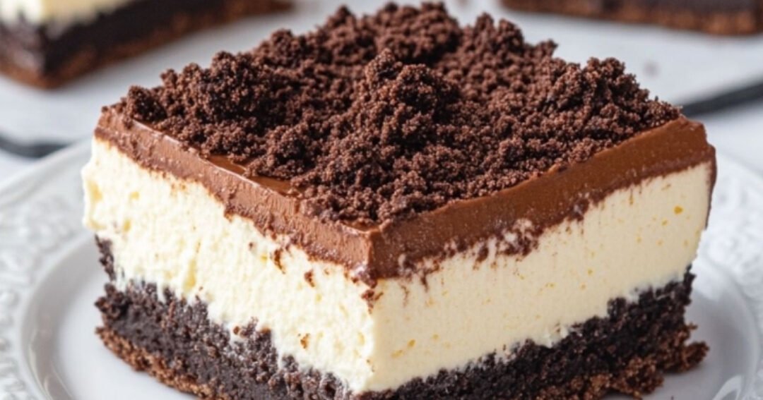 Završnica: Rasporedite beli fil preko karamela. Ostavite u frižideru bar 4 sata da se slojevi stegnu pre sečenja.