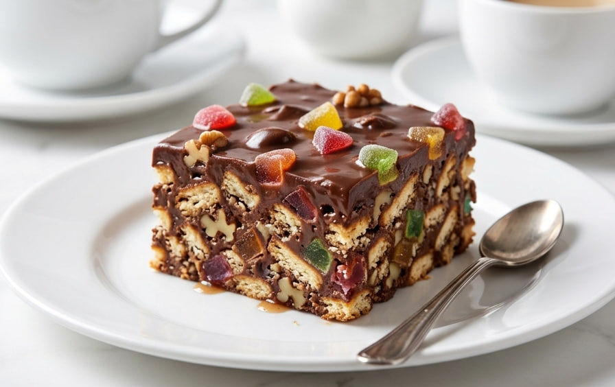 Kasato kocke su jedan od onih čuvenih, neprolaznih deserata koji uvek izmame osmeh na lice i vraćaju nas pravo u detinjstvo. Ovaj šareni, bogati kolač savršen je izbor za praznike, slave ili dečje rođendane, a njegova najveća prednost je to što se priprema neverovatno brzo i bez uključivanja rerne. Spoj izlomljenog keksa, krckavih oraha, slatkih žele bombona i bogate čokolade stvara pravu harmoniju tekstura i ukusa.