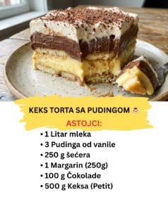Keks Torta sa Pudingom: Najbrža Poslastica sa Dva Fila (Bez Pečenja)