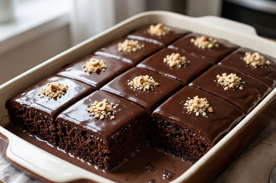 • Tajna neverovatne sočnosti: Bockanje vrelog kolača i trenutno prelivanje hladnim čokoladnim mlekom je ključni korak. Temperaturna razlika omogućava da testo savršeno upije tečnost, čineći ga neverovatno sočnim.