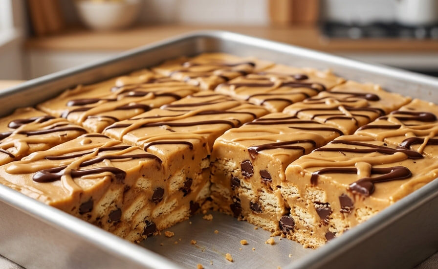 Brza kikiriki torta je pravi san za sve ljubitelje kikiriki putera i čokolade. Ovaj desert fantastično primenjuje popularni “broken biscuit pan” koncept, gde se lomljeni keks i čokoladne kapljice utapaju u bogatu, svilenkastu kremu. Rezultat je poslastica koja se ne peče, sprema se za tren oka, a na preseku izgleda kao pravo umetničko delo.