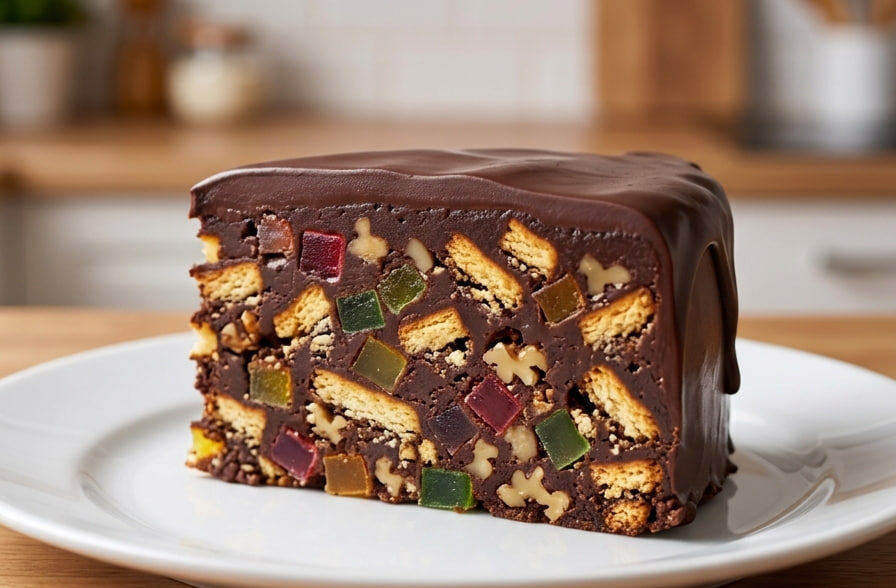 Priprema je izuzetno brza i ne zahteva upotrebu rerne, što ovu tortu čini savršenim izborom za svaku priliku, bilo da su u pitanju praznici ili brzinski vikend desert. Kako bi vaš presek izgledao bogato i šareno, a torta imala besprekornu, sjajnu čokoladnu glazuru baš kao na fotografiji, originalni recept smo dopunili dodatnom čokoladom i uljem koji su apsolutno neophodni za završni preliv.