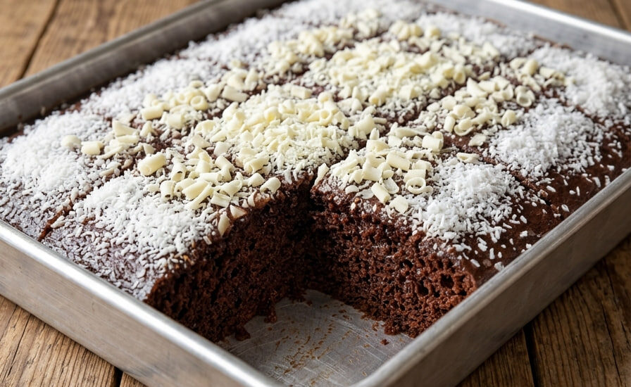Kombinacija tamne čokolade i kokosa je jedan od najdražih poslastičarskih parova, a ovaj sočni čoko-kokos kolač donosi taj prepoznatljivi ukus u najjednostavnijem mogućem formatu. Ovo je izdašan, mekan i neverovatno sočan desert koji se priprema bez vage i komplikovanih tehnika, jer se svi glavni sastojci mere običnom šoljom. Idealan je za iznenadne goste ili kada vam se brzo prijede nešto slatko i čokoladno.