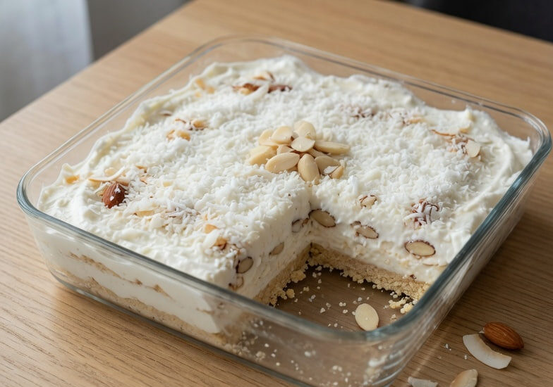 Raffaello Kolač bez Pečenja: Kremasta Fantazija sa Kokosom i Bademima