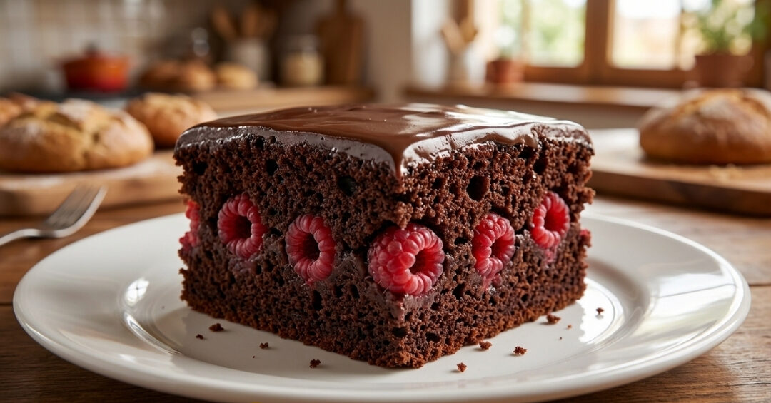 Kao što možete videti na našoj fotografiji, ovaj kolač krase bogat sloj čokoladnog preliva i predivne maline koje se kriju unutar mekanog biskvita. Priprema je brza i jednostavna – sve se meri na šolje, što ga čini idealnim za dane kada želite vrhunski slatkiš bez previše komplikacija u kuhinji. Pravi užitak koji se pamti!