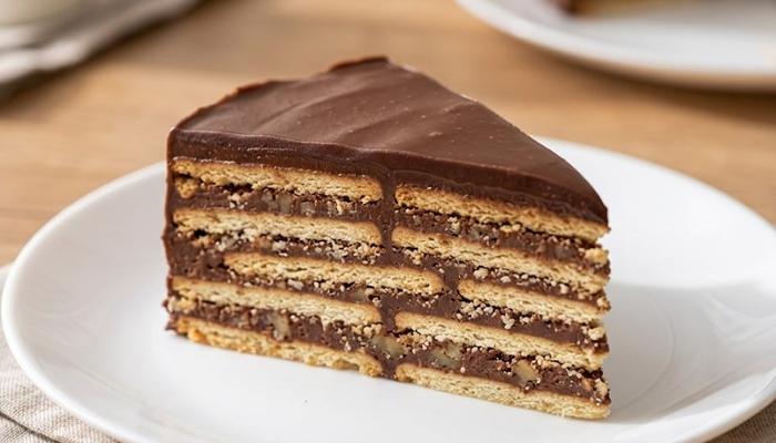 - Termička obrada (Pecenje/Kuvanje): U kalup za tortu stavite sloj keksa, pa preko njega nanesite sloj čokoladnog krema. Ponovite postupak dok ne potrošite sve sastojke, završavajući kremom na vrhu.