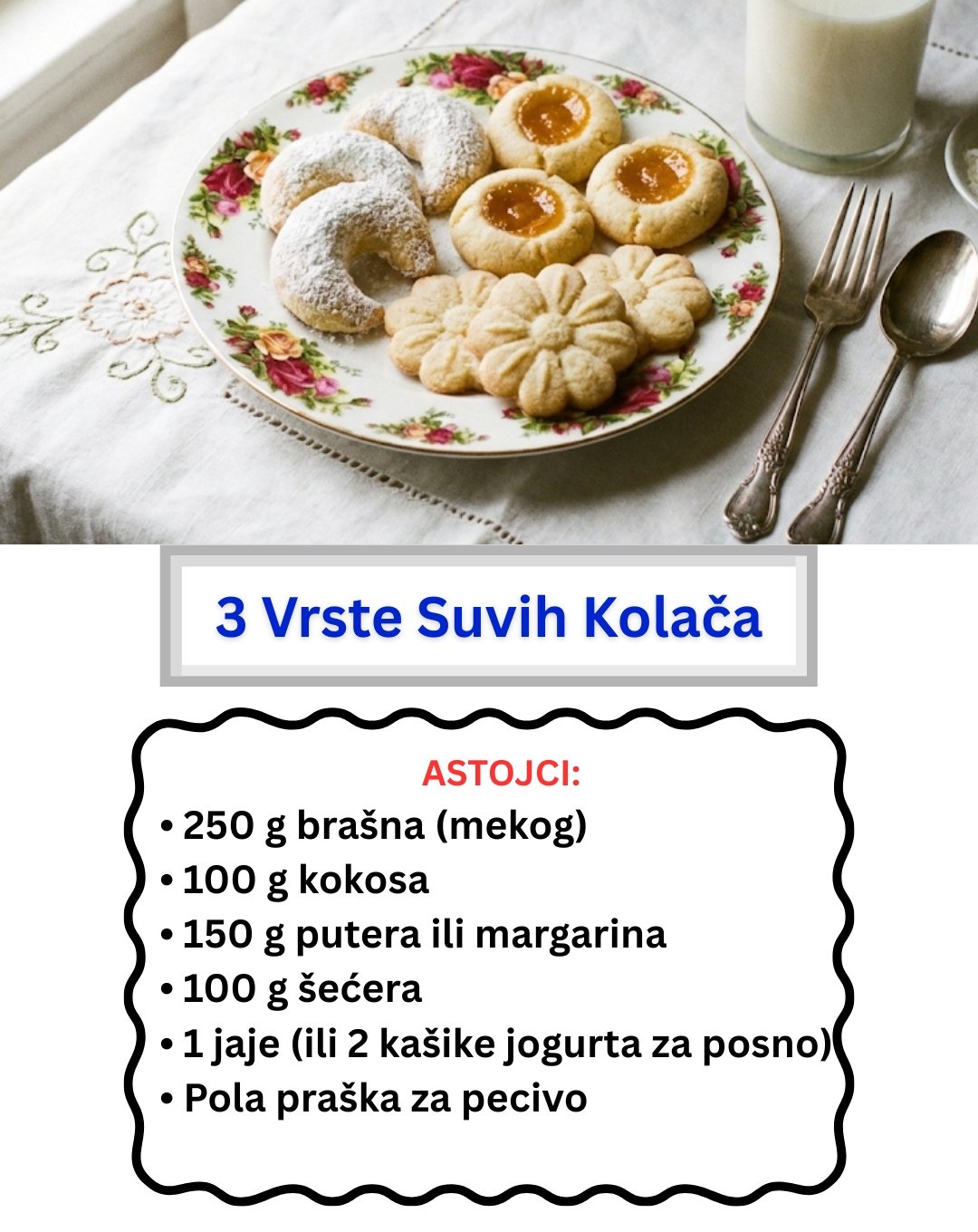 Starinske Kokos Kiflice: Jedno Testo za 3 Vrste Suvih Kolača (Recept)